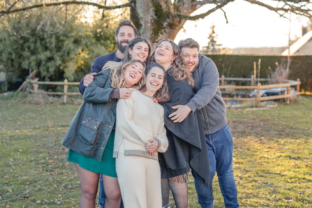 Ces photos ne racontent pas des familles parfaites — elles racontent des familles vraies. Avec les cris, les câlins, les animaux qui ne restent pas en place et les enfants qui font n’importe quoi en fond. Parcourez ce portfolio et imaginez votre propre séance.